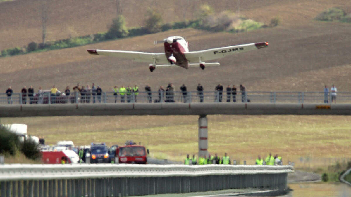 Police said the plane struck a truck carrying three people, however, all of the three occupants, as well as the pilot and passenger on the plane, were miraculously unharmed during the crashes.